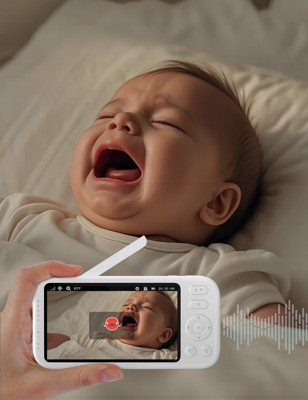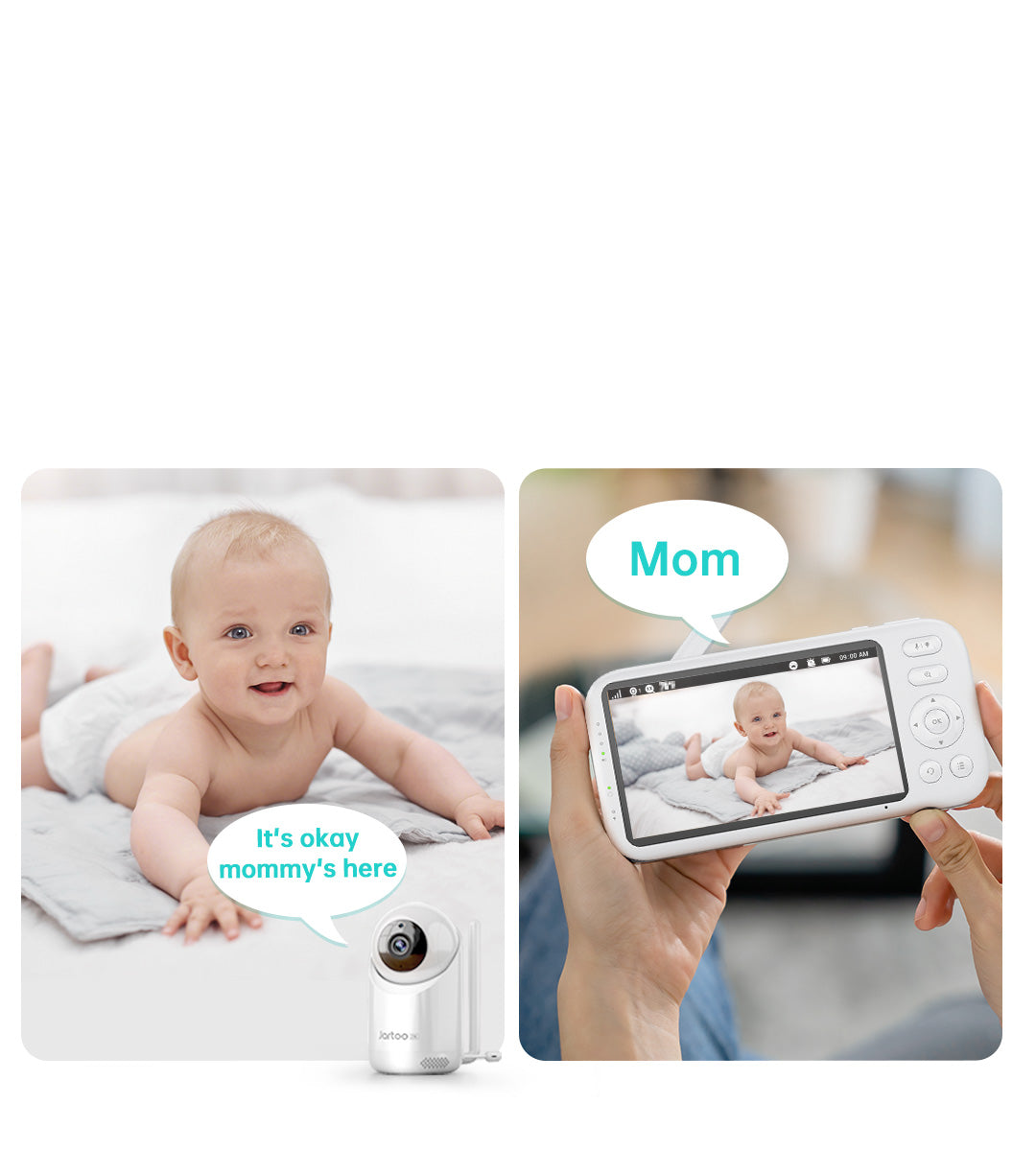 • [Timely Show Up When Baby Cries ] With exclusive smart AI cry-sensor technology, Jartoo baby monitor with camera and audio aims to be your parenting assistant, extra eyes on your baby while you getting sound sleep, providing you reliable notifications without false alarm. By adding video baby monitor with camera and audio to your list of nursery must-haves,you and your family will easily restore the pace of life in the living room, kitchen, bedroom, basement and yard with full peace of mind.