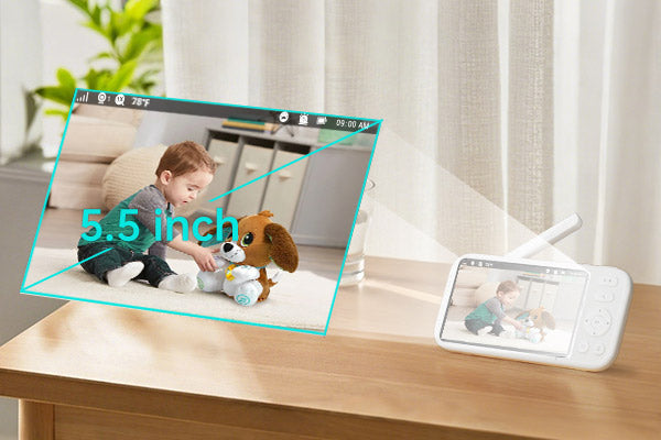 • [No Details is Spared with 360 Degree View] Equipped with 2K camera, 5.5" IPS LCD screen and 360 degree Pan & Tilt & Zoom, Jartoo video baby monitor gives you over four times more resolution than others with incredible details, ensuring no important moments or changes is missed. With vibrant and natural color calibration, the baby camera monitor delivers lifelike images and videos with real colors, allowing to observe kid's condition and surroundings with accuracy and confidence.